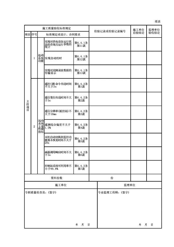 表格名称:G10030201 远动系统检验检验批质量验收记录表