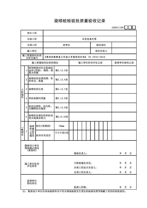 表格名称:G02011109 旋喷桩检验批质量验收记录