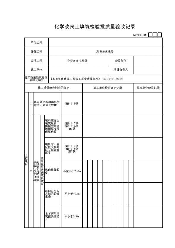 表格名称:G02011802 化学改良土填筑检验批质量验收记录
