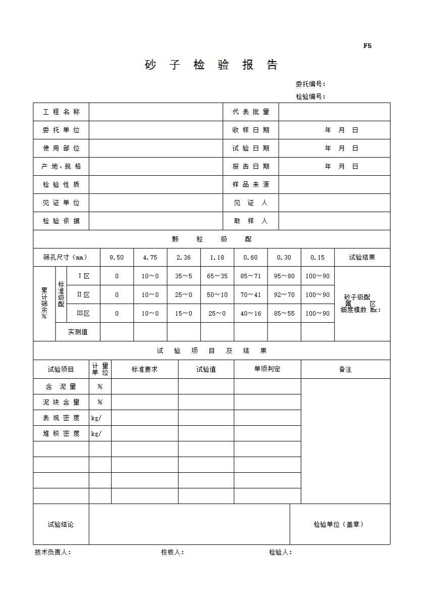 F类 原材料、半成品、构配件、设备进场检验及复检用表