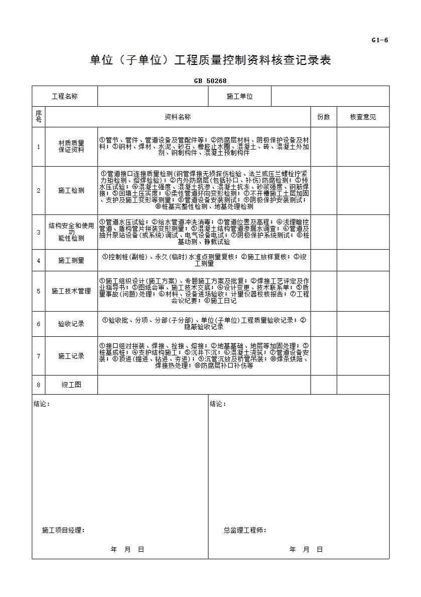 表格名称:单位(子单位)工程质量控制资料核查记录表