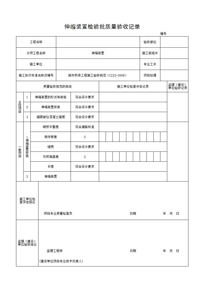 表格名称:4 伸缩装置检验批质量验收记录