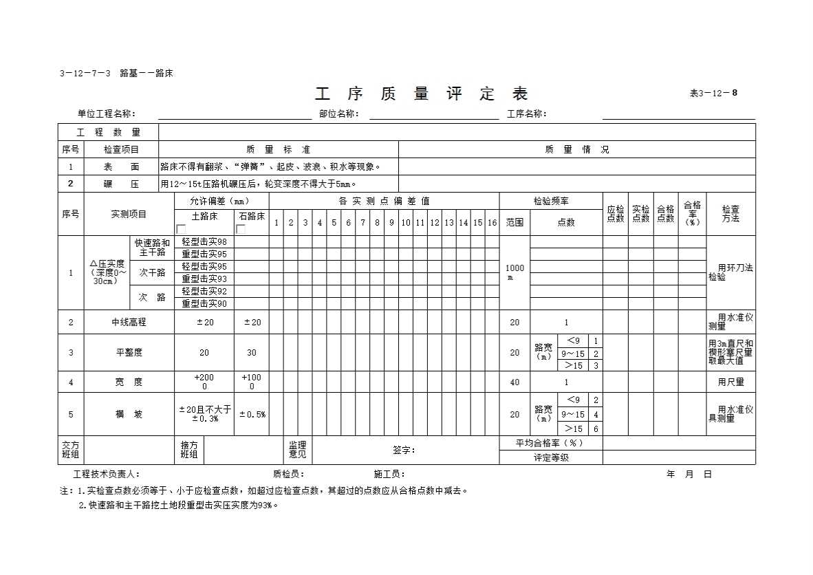 CJJ1-90/CJJ2-90/CJJ3-90 工序评定表