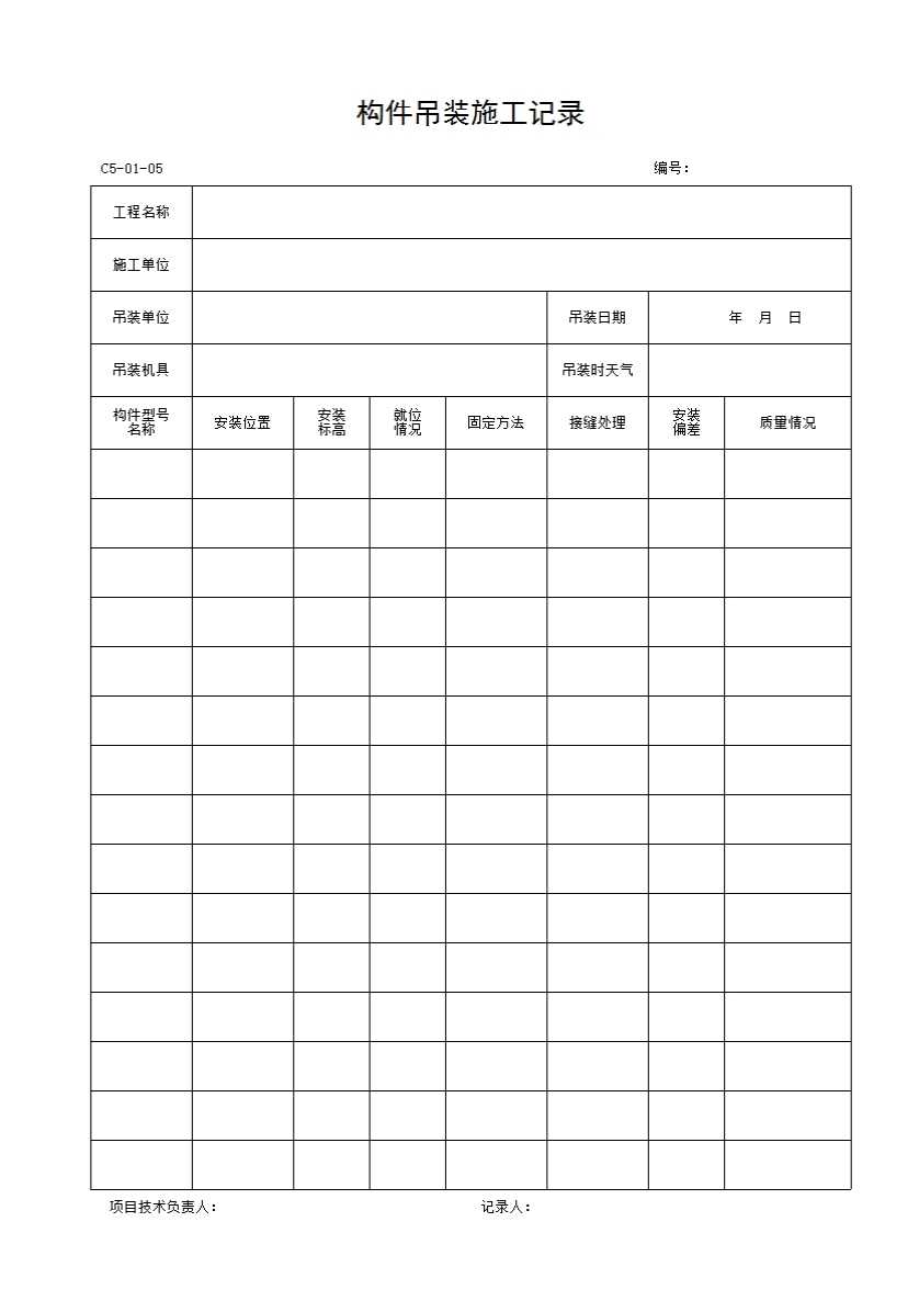 表格名称:C5-01-05 构件吊装施工记录