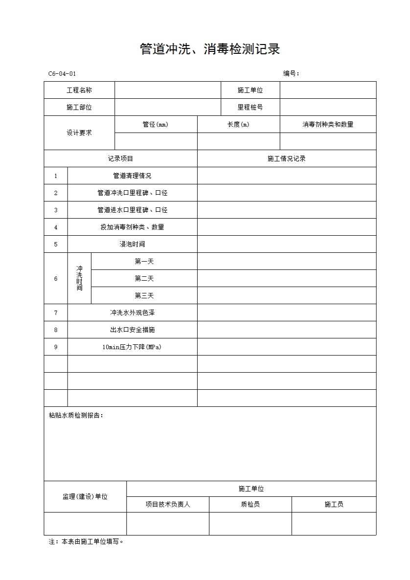 表格名称:C6-04-01 管道冲洗、消毒检测记录