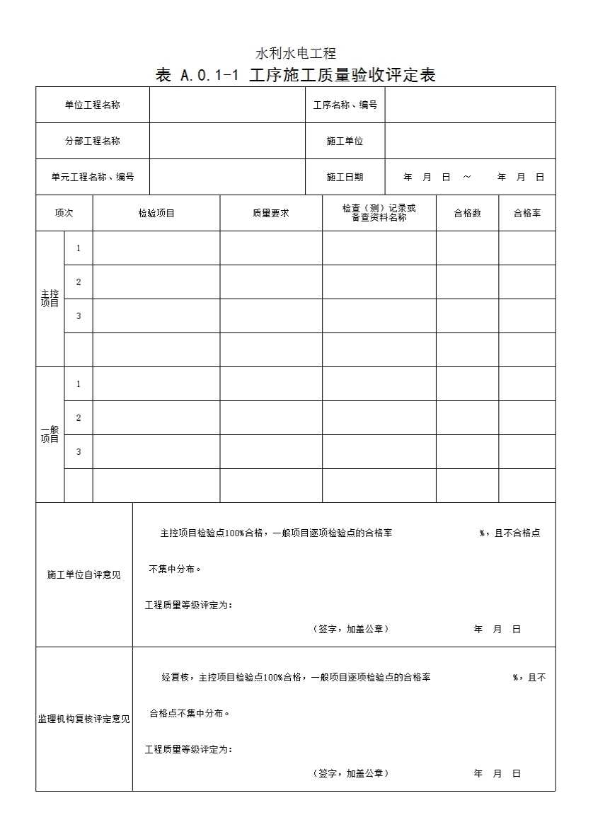 表格名称:表 A.0.1-1 工序施工质量验收评定表