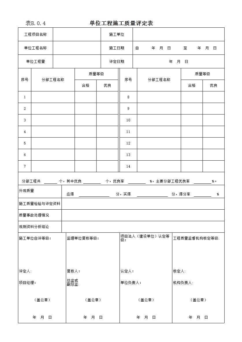 附录B 灌溉与排水工程施工质量评定表(样式)