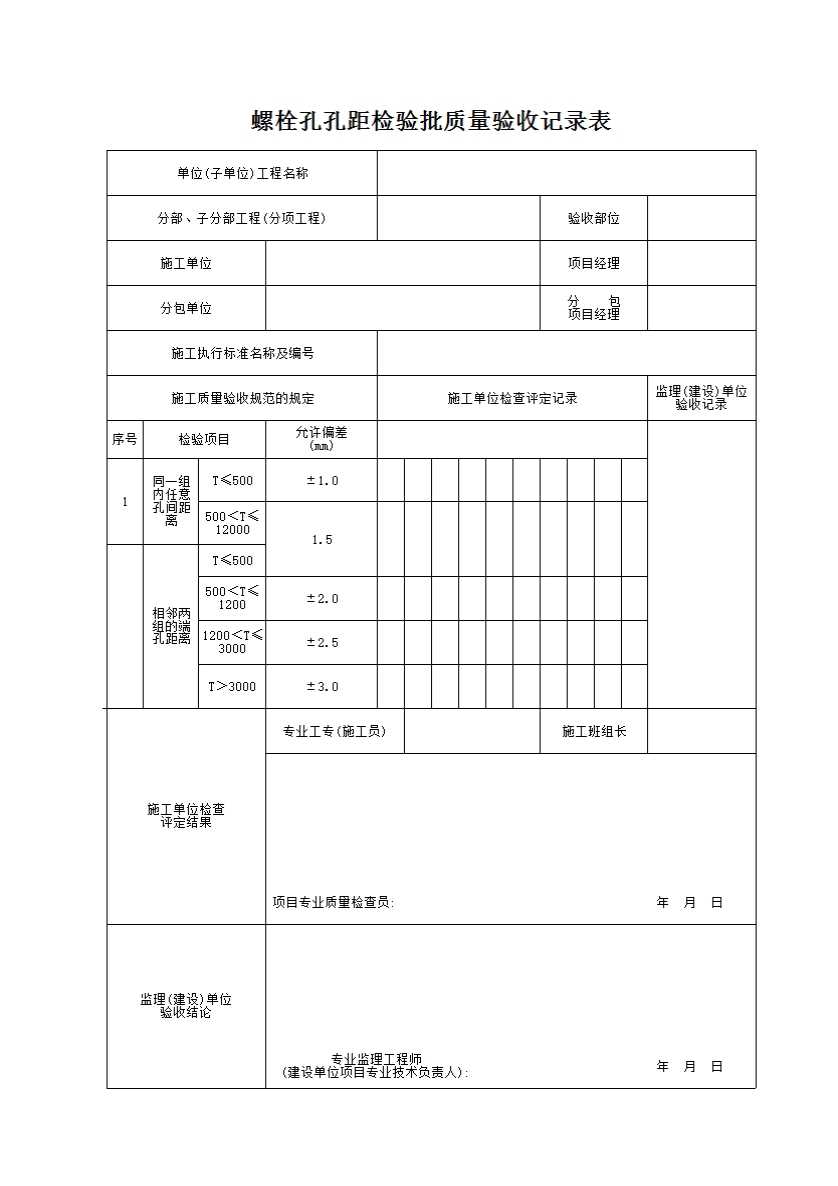表格名称:螺栓孔孔距检验批质量验收记录表