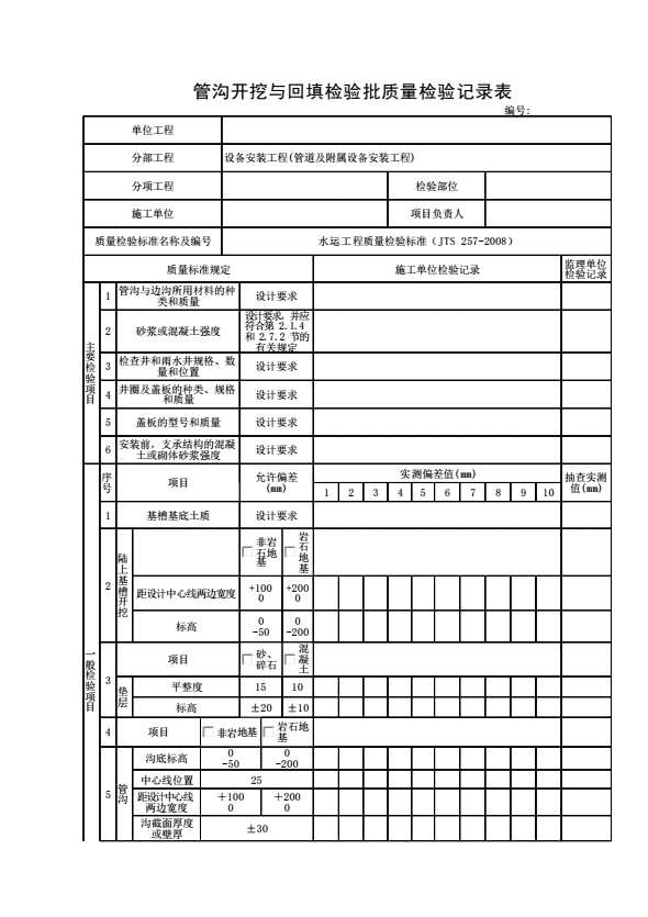 表格名称:管沟开挖与回填检验批质量检验记录表