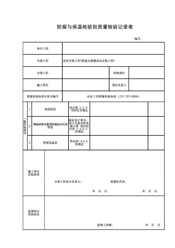 表格名称:防腐与保温检验批质量检验记录表