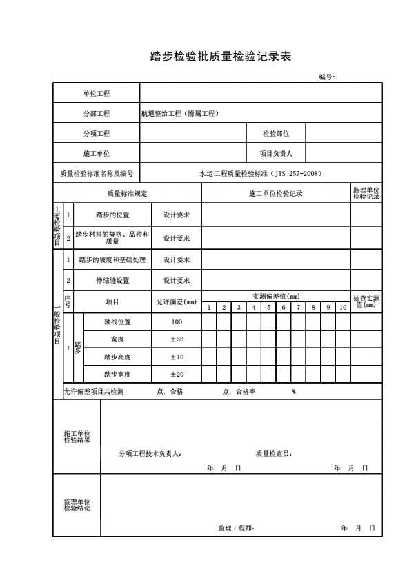 表格名称:踏步检验批质量检验记录表