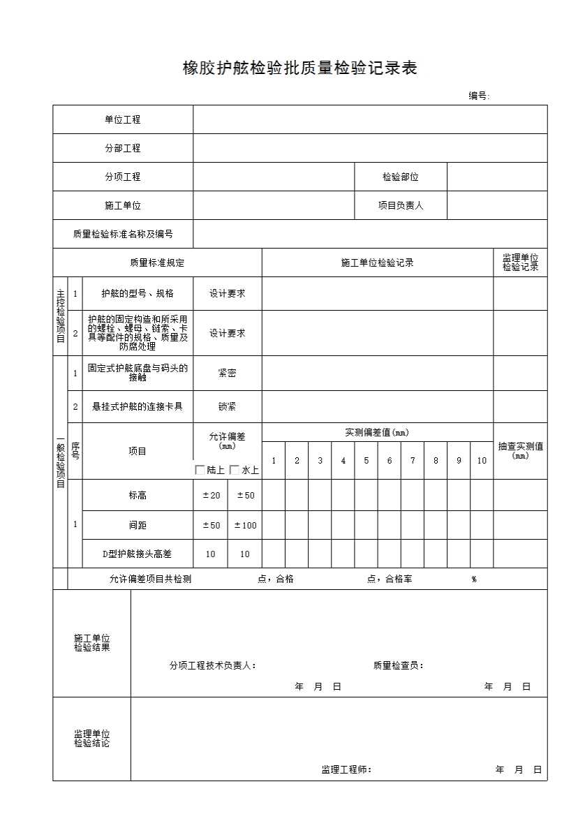 2. 8. 4. 1 护舷的型号、 规格应满足设计要求, 并应符合现行行业标准《橡胶护舷》(HG/T2866) 等的有关规定。 检验数量: 施工单位、 监理单位全数检验。 检验方法: 检查出厂质量证明文件并观察检查。 充气橡胶护舷应做气密性试验。