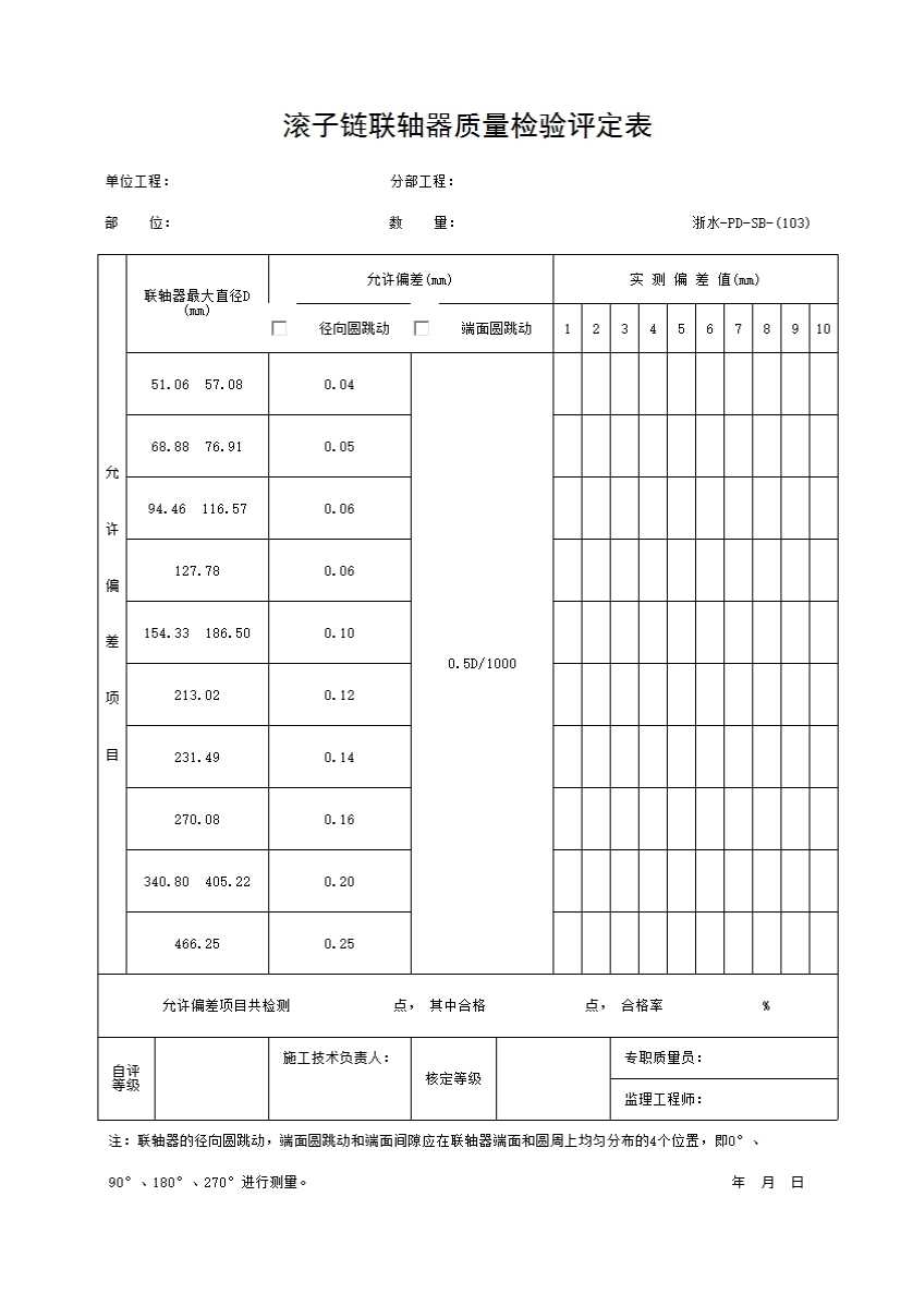 表格名称:103 滚子链联轴器质量检验评定表