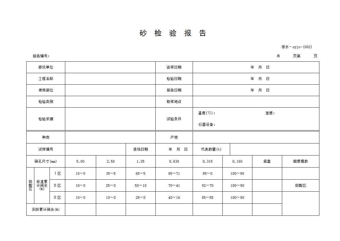 表格名称:002 砂检验报告