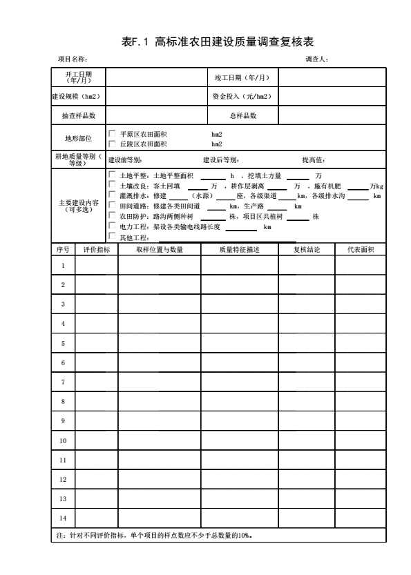 表格名称:表F.1 高标准农田建设质量调查复核表