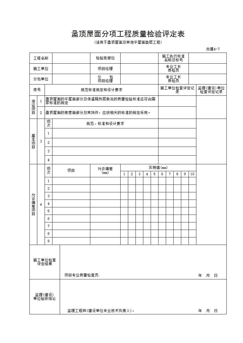 表格名称:古建4-7 盝顶屋面分项工程质量检验评定表