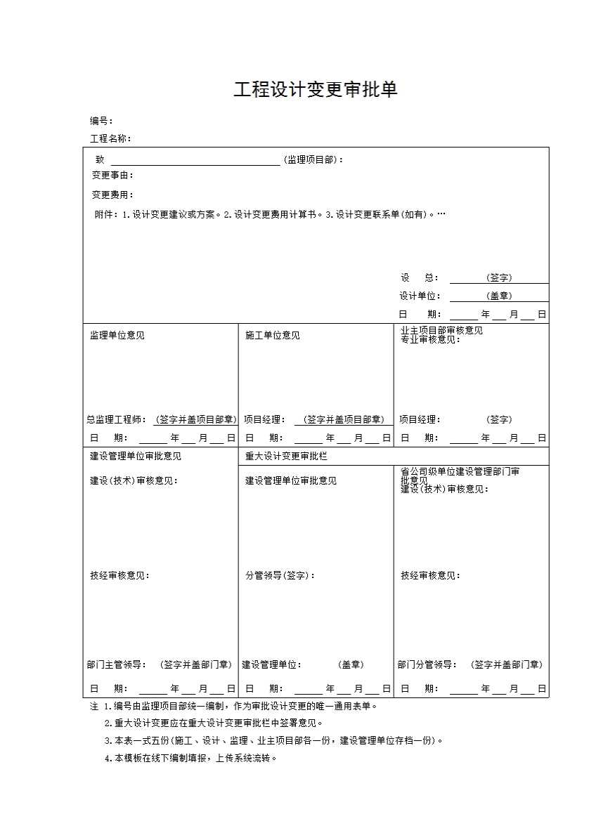 表格名称:YZJ2:工程设计变更(现场签证)审批单