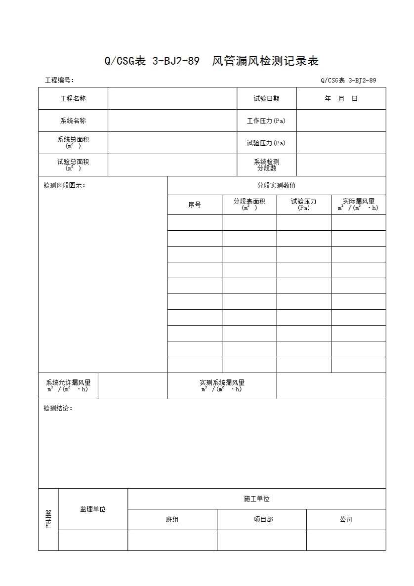 QCSG 表 3-BJ2-89 风管漏风检测记录表