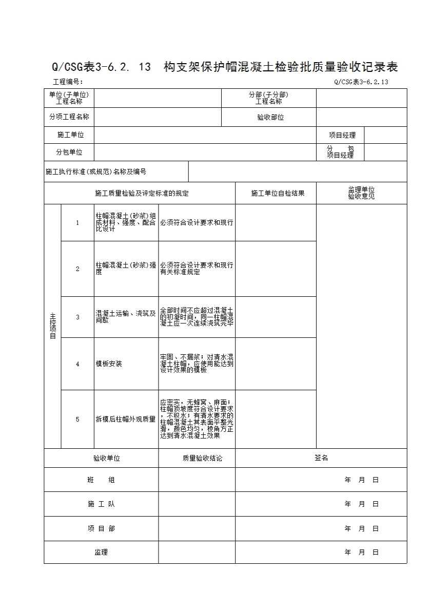 表格名称:QCSG 表 3-6.2.13 构支架保护帽混凝土检验批质量验收记录表