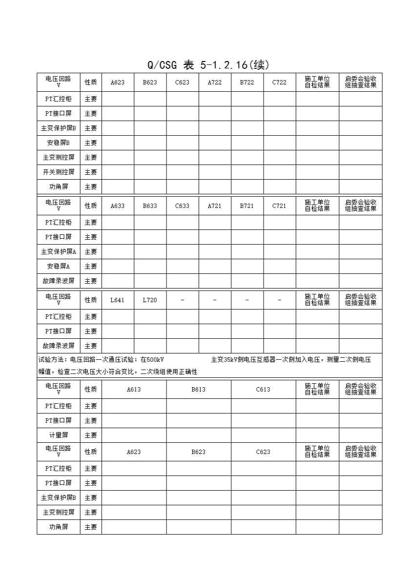 QCSG 表 5-1.2.16 500kV_____主变间隔 电压互感器通压 分项工程质量验收记录表