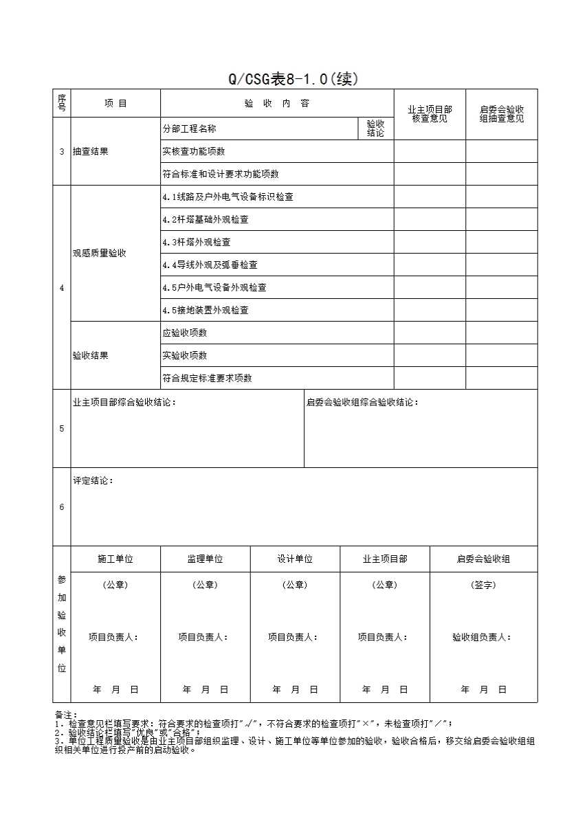 QCSG表8-1.0 架空线路工程 单位工程质量验收与评定记录表