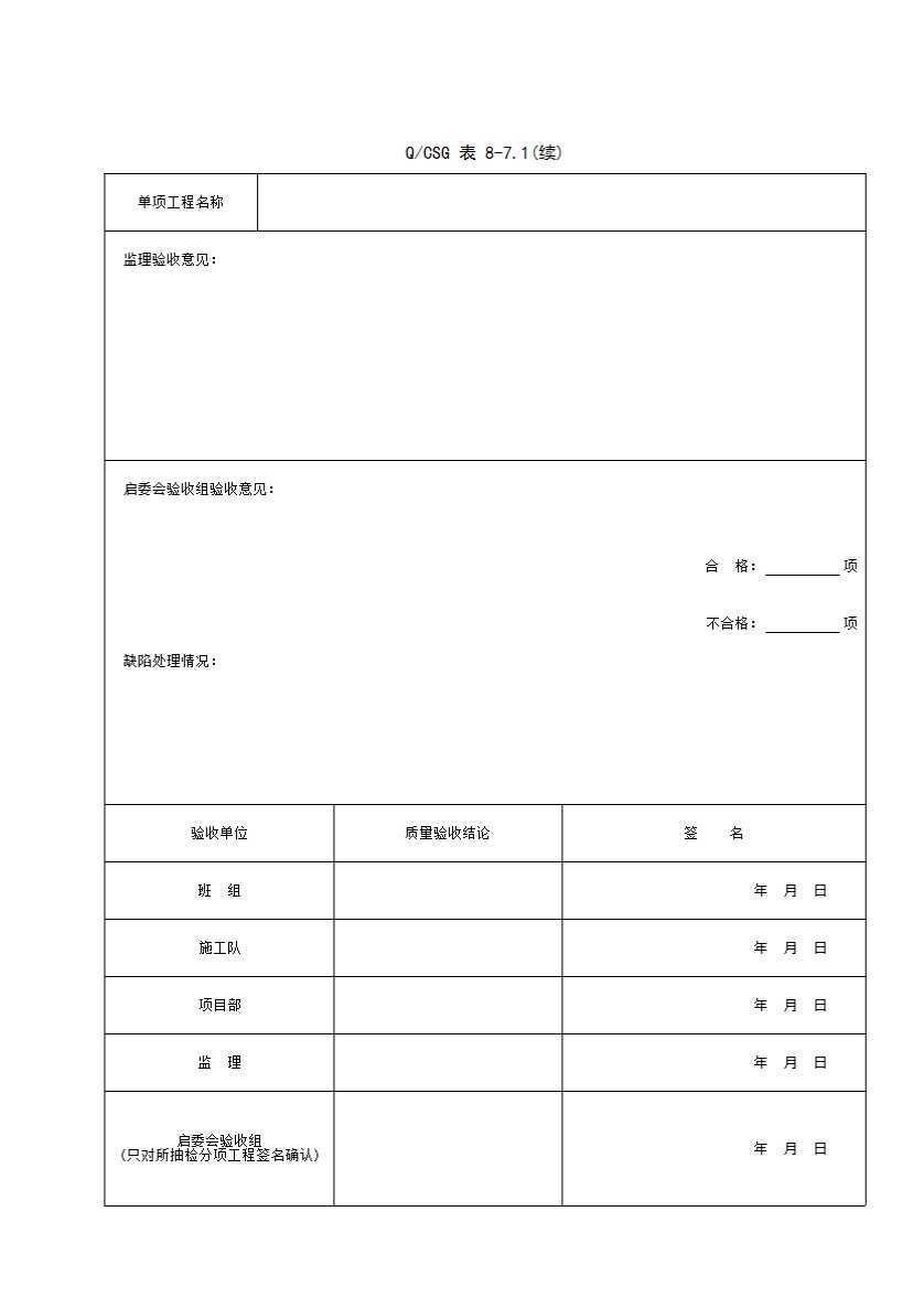 QCSG表8-7.1 钢管杆、铁塔、混凝土电杆组立安装 分项工程质量验收记录表