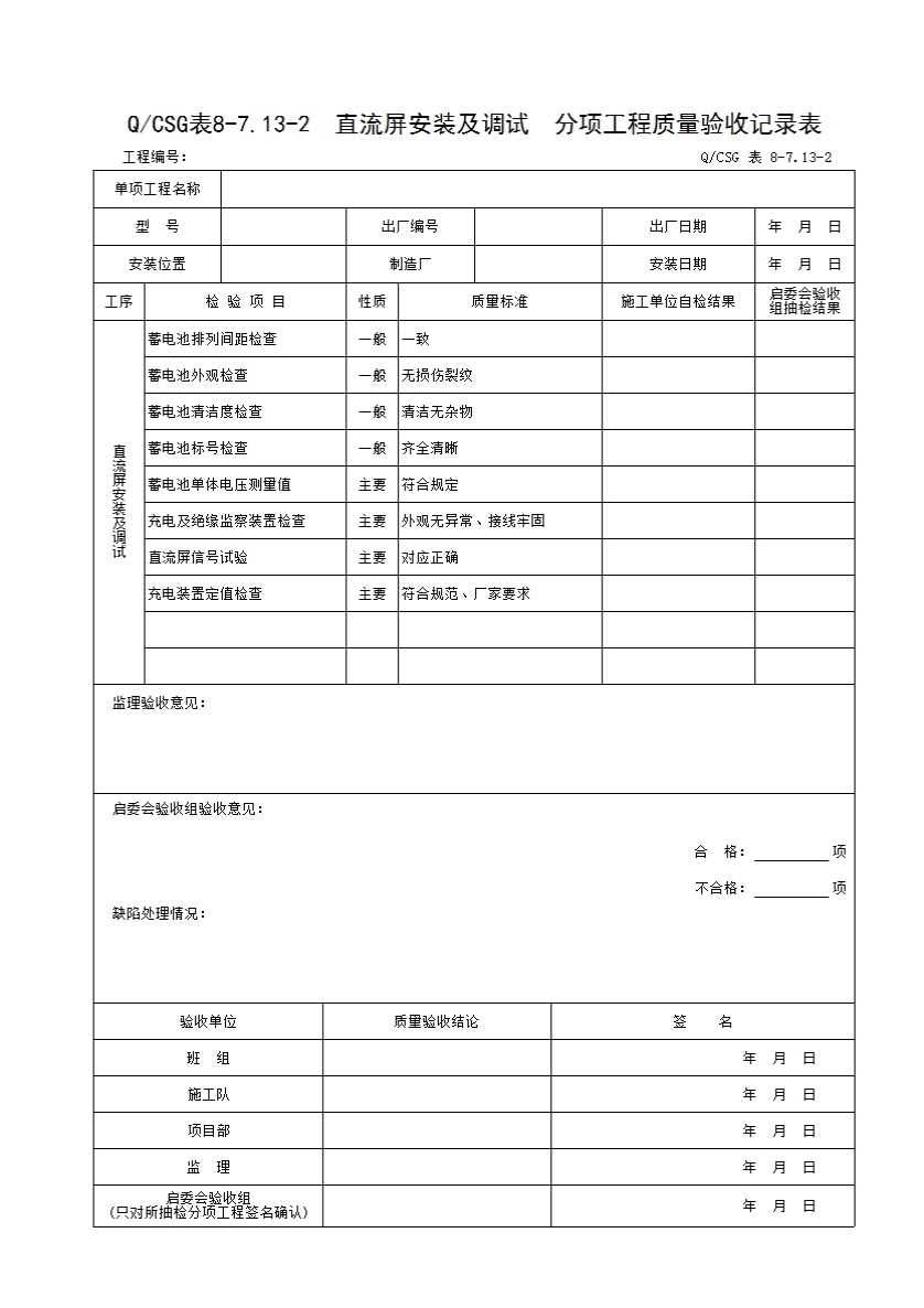 QCSG表8-7.13-2 直流屏安装及调试 分项工程质量验收记录表
