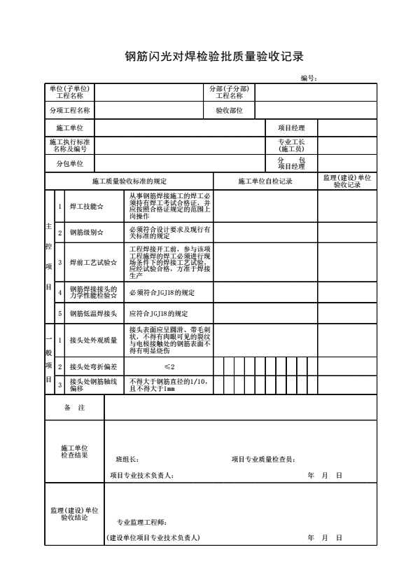 表格名称:C.1 钢筋闪光对焊检验批质量验收记录