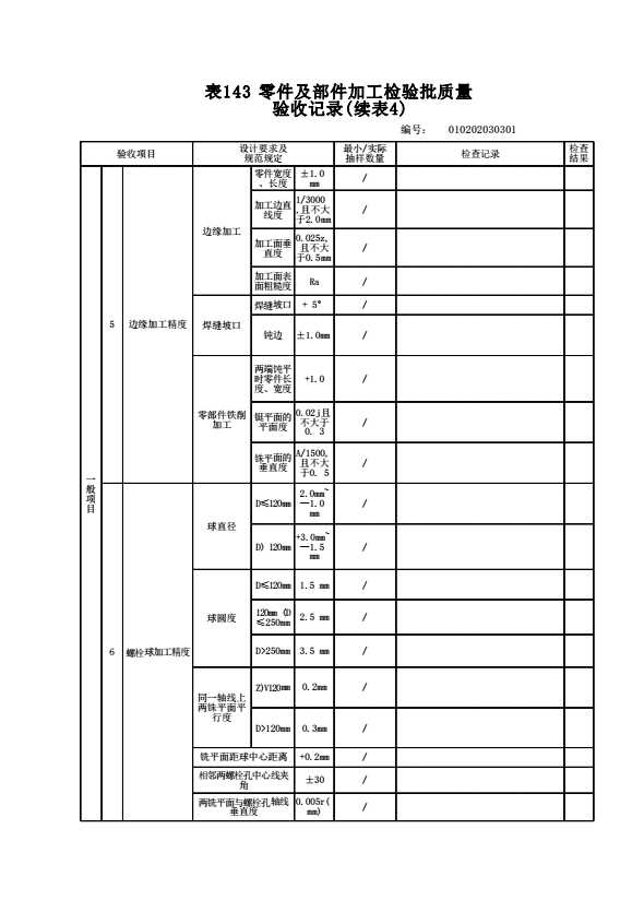 表格名称:010202030301 零件及部件加工检验批质量验收记录
