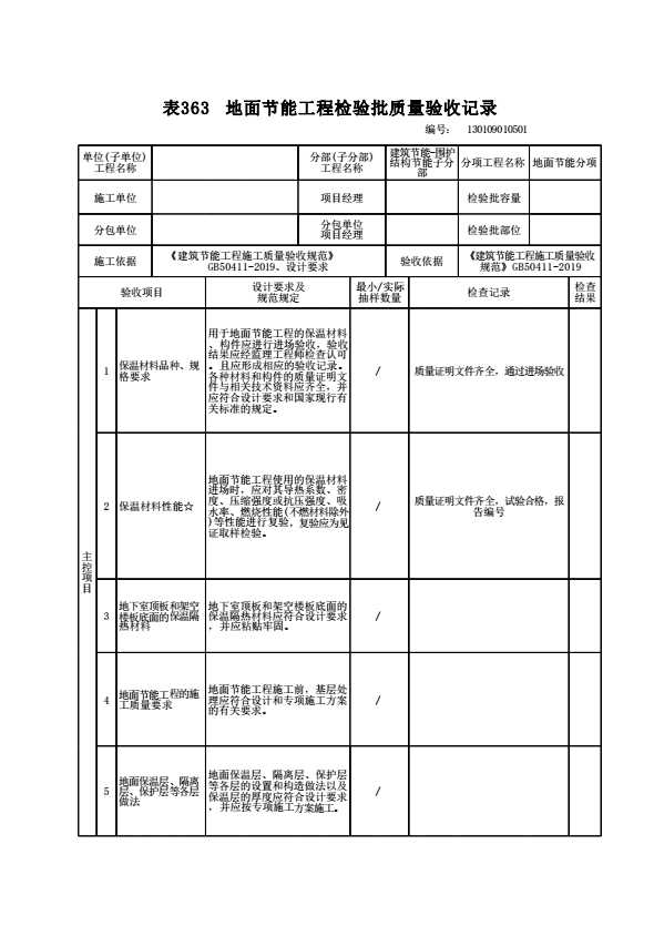 表格名称:130109010501 地面节能工程检验批质量验收记录