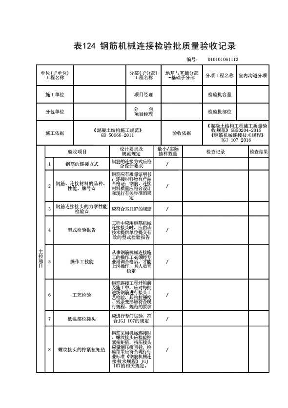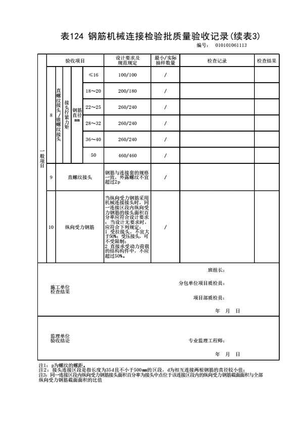 表格名称:130301061113 钢筋机械连接检验批质量验收记录