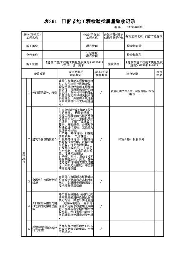 表格名称:130309010301 门窗节能工程检验批质量验收记录