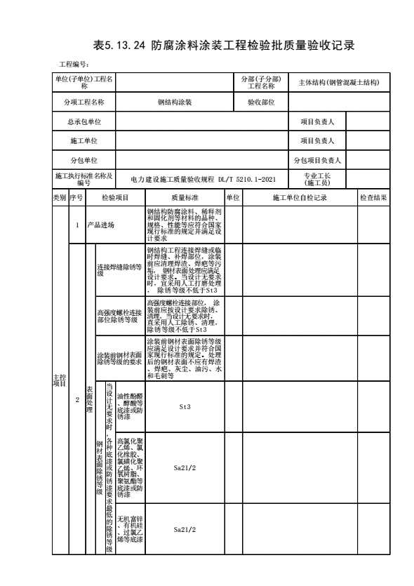 表格名称:【符合表5.13.24】表5.15.8 钢管防腐涂装检验批量验收记录