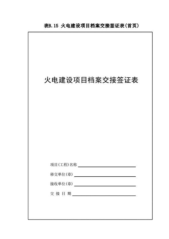 表格名称:表B.15 火电建设项目档案交接签证表(首页)