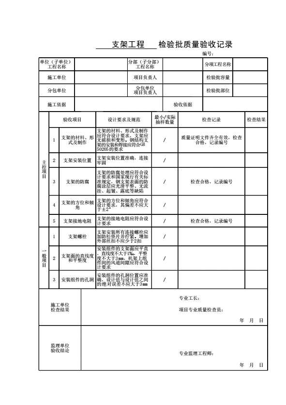 表格名称:支架工程检验批质量验收记录