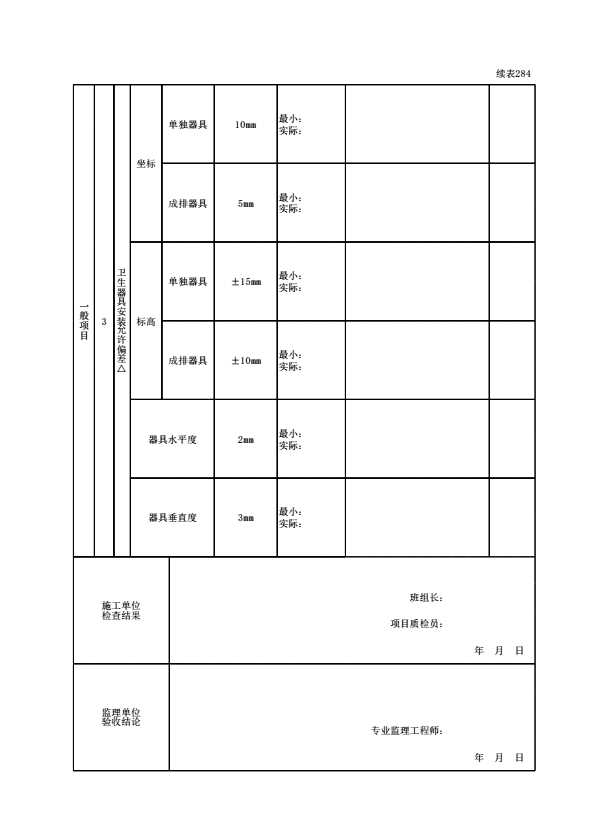 表格名称:030105030101 卫生器具安装检验批质量验收记录