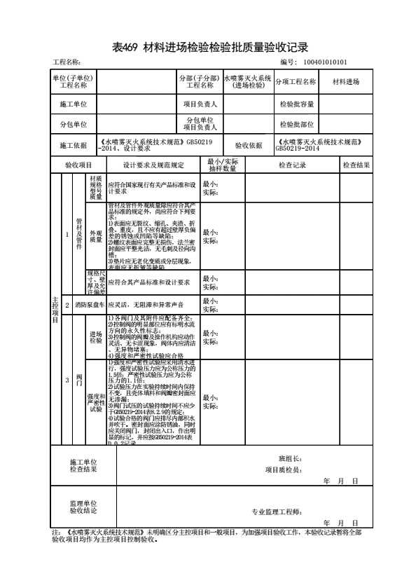 表格名称:100401010101 材料进场检验检验批质量验收记录