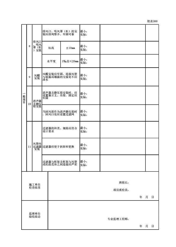 表格名称:110106020301 风管系统安装检验批质量验收记录(送风系统)