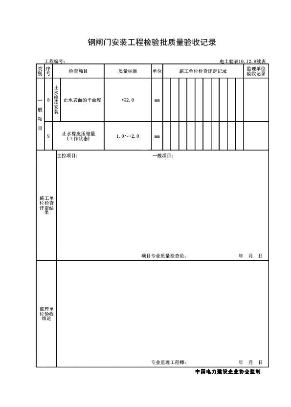 表格名称:电土验表10.12.9 钢闸门安装工程检验批质量验收记录