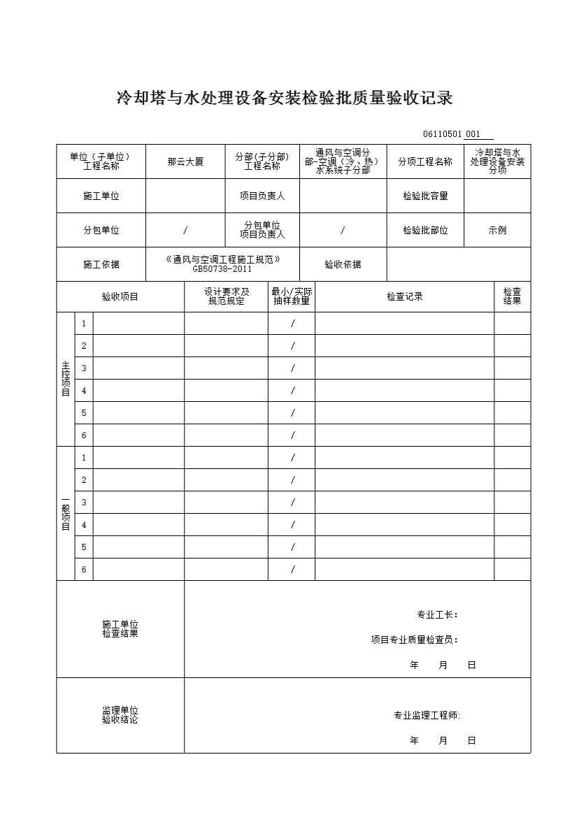 表格名称:06110501_冷却塔与水处理设备安装检验批质量验收记录