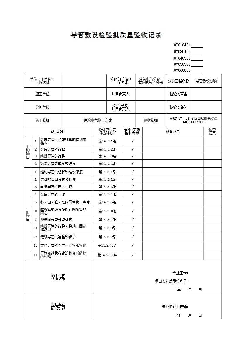07010401_导管敷设检验批质量验收记录