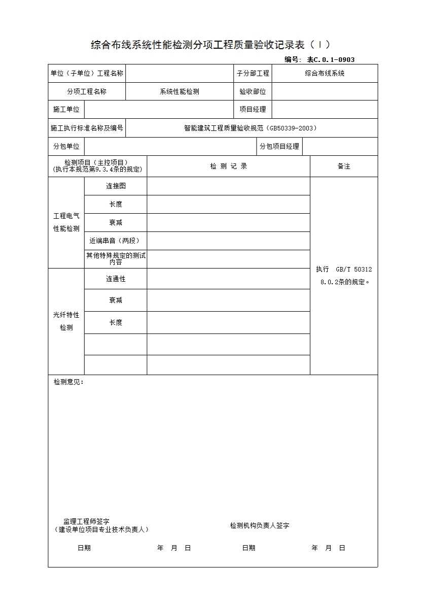 表格名称:C.0.1-0903 综合布线系统性能检测分项工程质量验收记录表(Ⅰ
