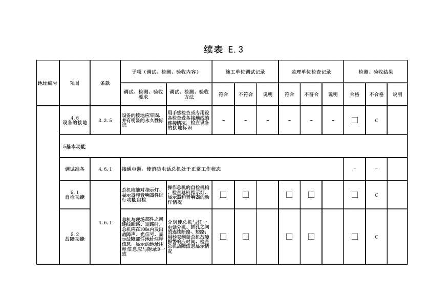 表格名称:表E.3 消防专用电话系统调试、检测、验收记录(续表5)