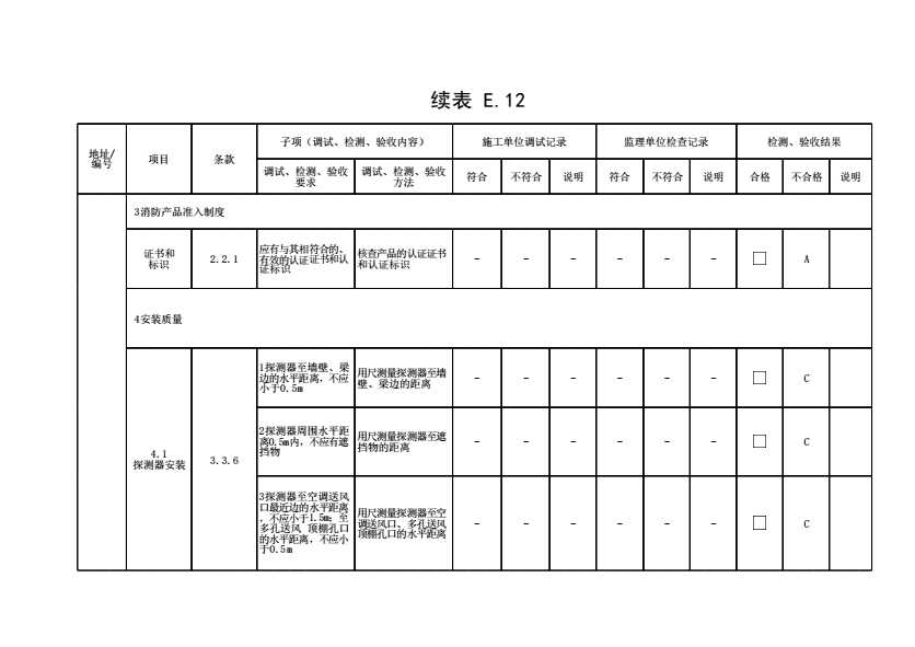 表格名称:表E.12 气体、干粉灭火系统调试、检测、验收记录(续表19)