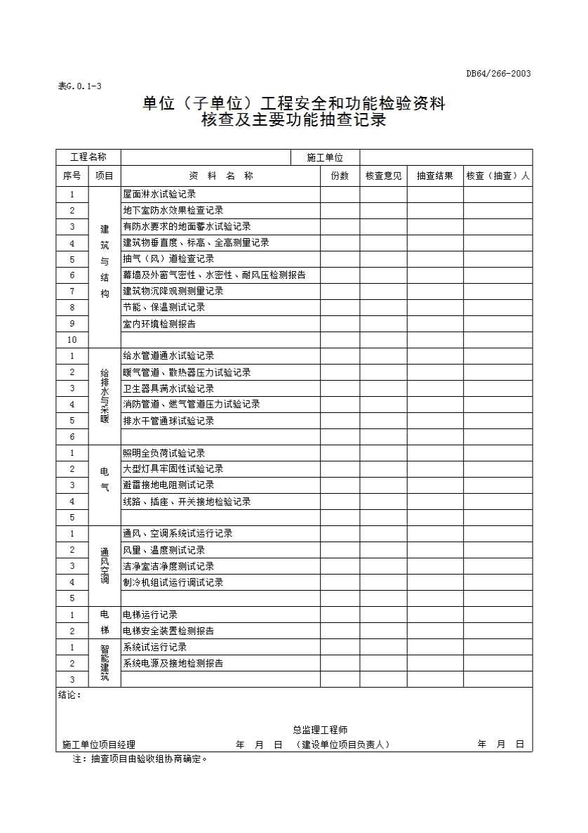 C8-3 单位(子单位)工程安全和功能检验资料核查及主要功能抽查记录