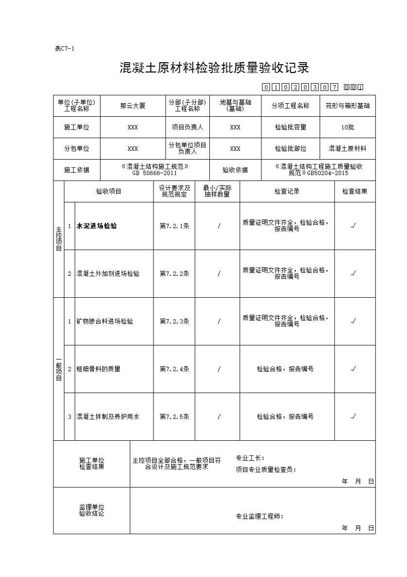 01020307_混凝土原材料检验批质量验收记录
