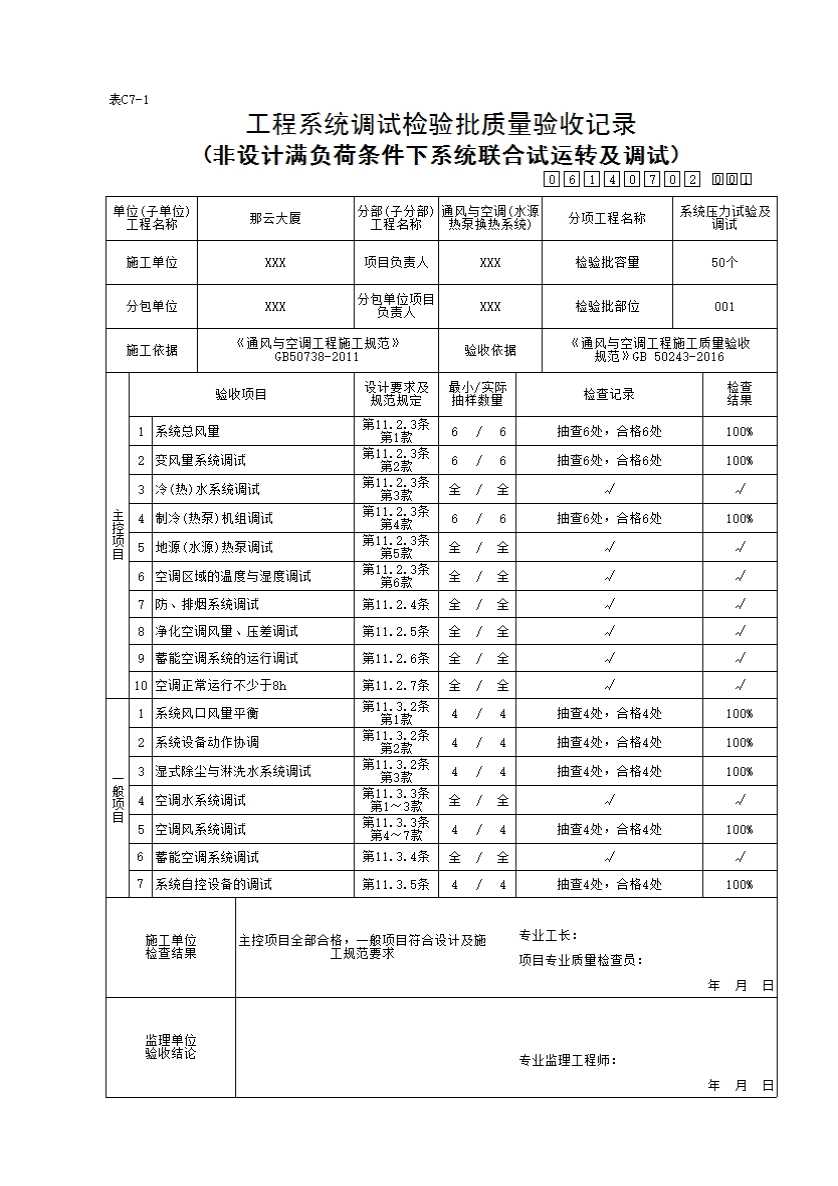 06140702_工程系统调试检验批质量验收记录(非设计满负荷条件下系统联合试运转及调试)