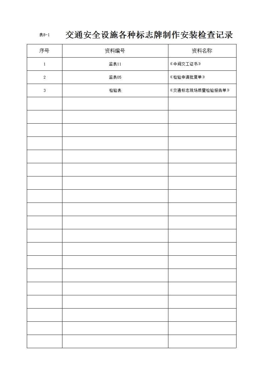 表格名称:表8-1 交通安全设施各种标志牌制作安装检查记录