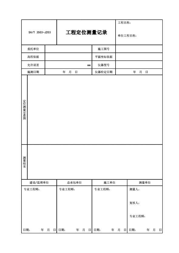 SH/T 3503-J203 工程定位测量记录