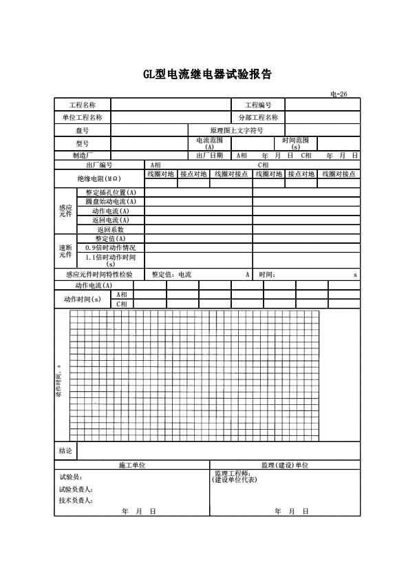 表格名称:电-26 GL型电流继电器试验报告
